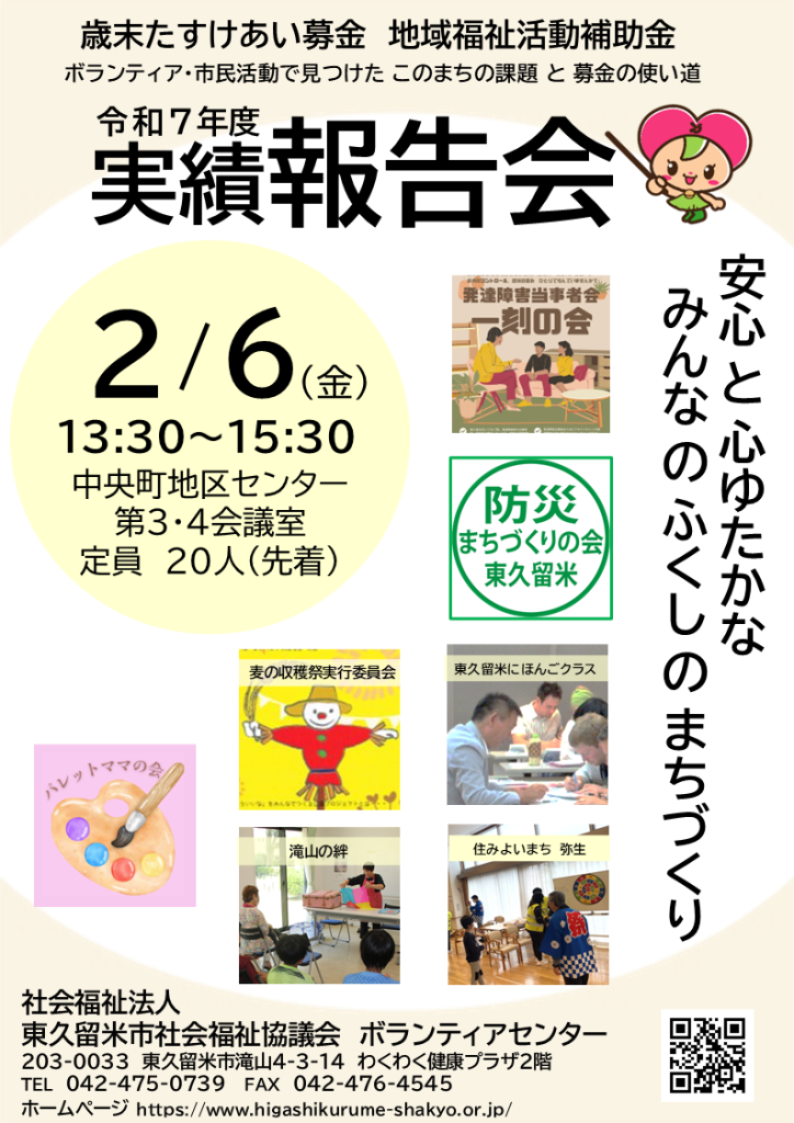 住みよいまち 弥生、麦の収穫祭実行委員会、滝山の絆、パレットママの会