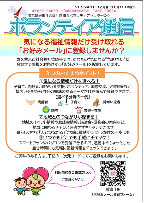 「ひがしくるめ社協だより」に、ボランティアセンターの情報を年4回(4月・9月・12月・2月)掲載