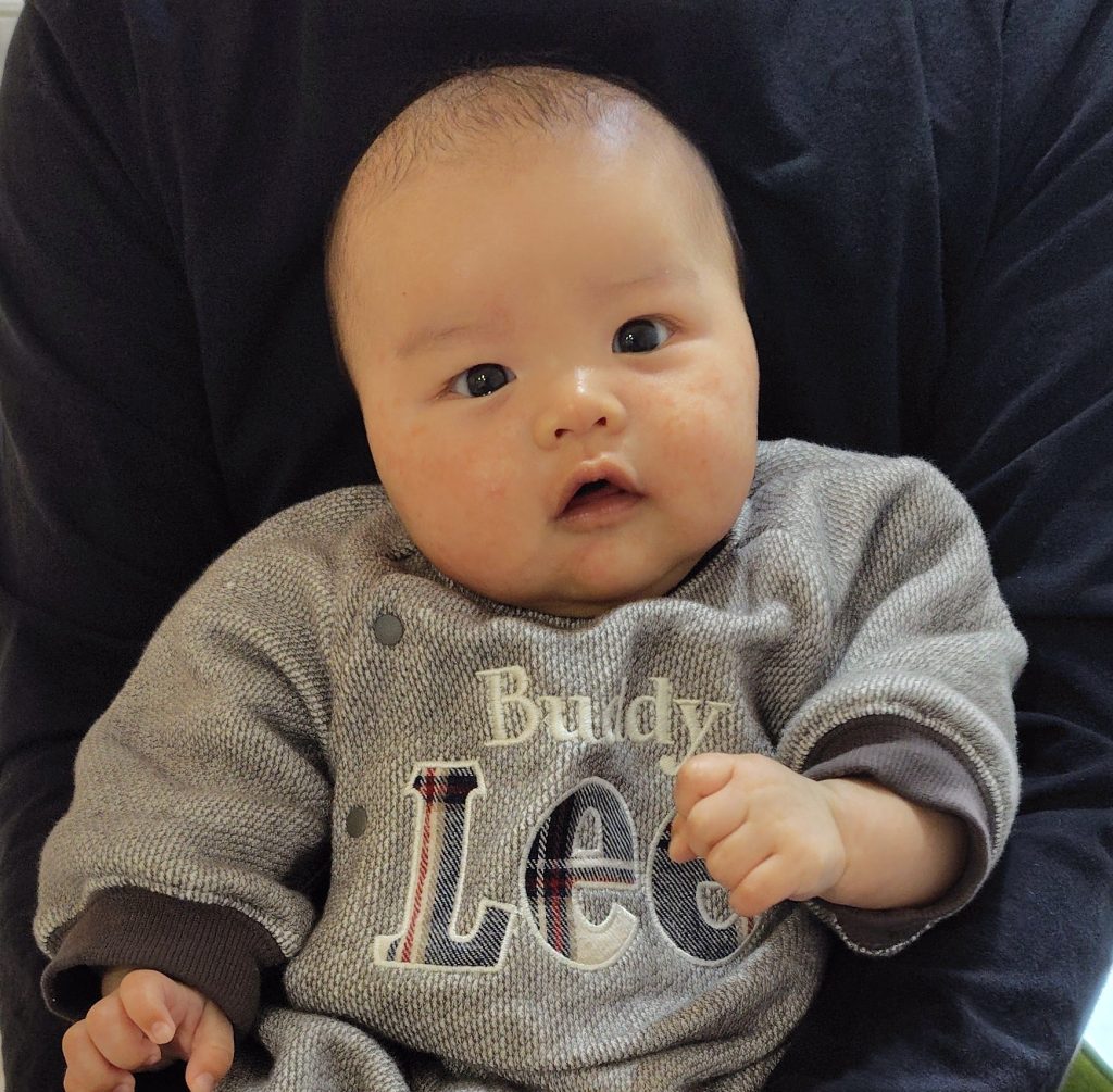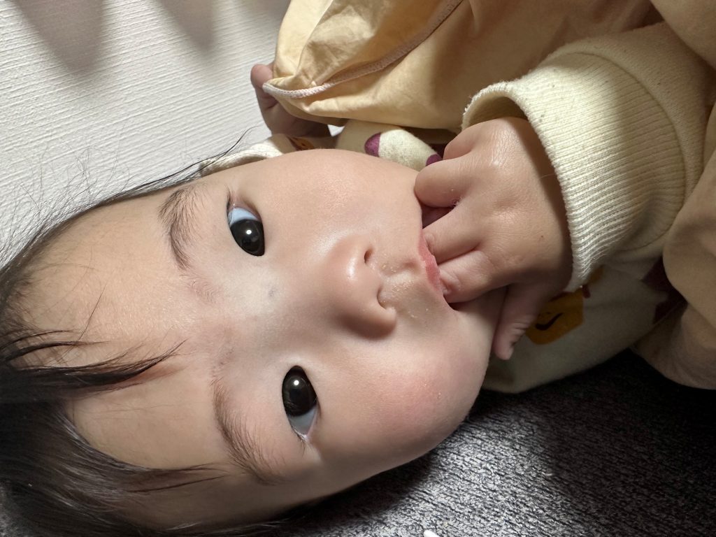 初めての子どもで、すくすく育って安心しています。でも写真はお熱がある時の写真です。